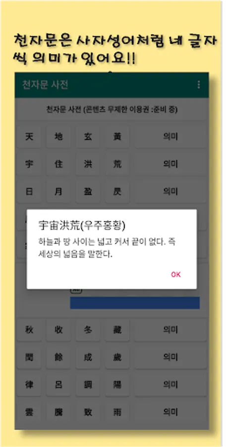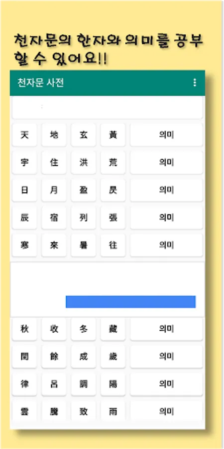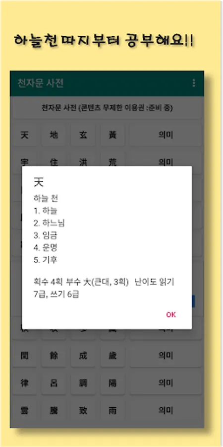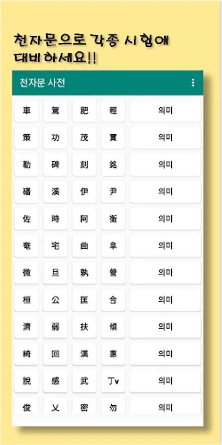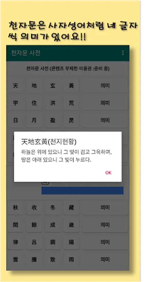 한자사전 (부수 ,사자성어 , 초중급 한자, 천자문)