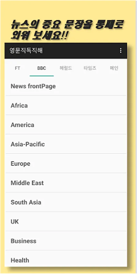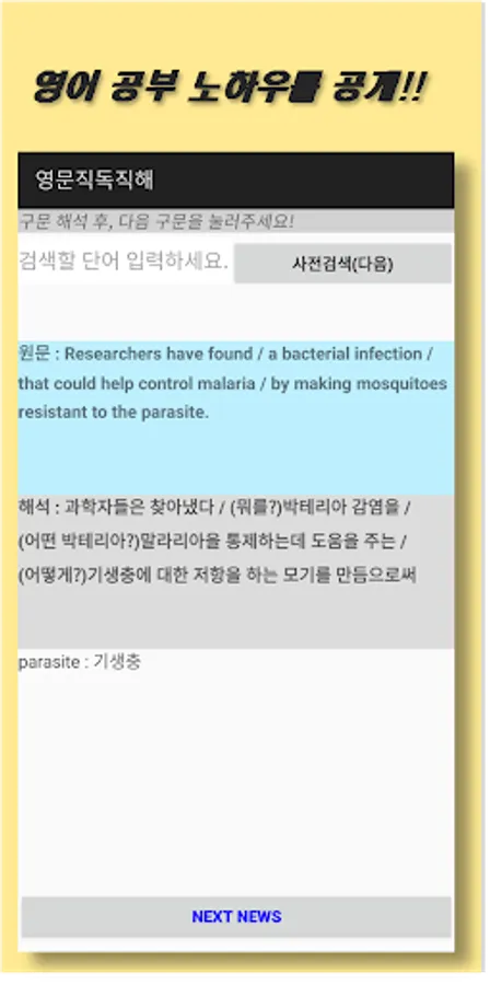 1. Automatic search function of TOEIC-listed words by loading only the core sentence of the English newspaper