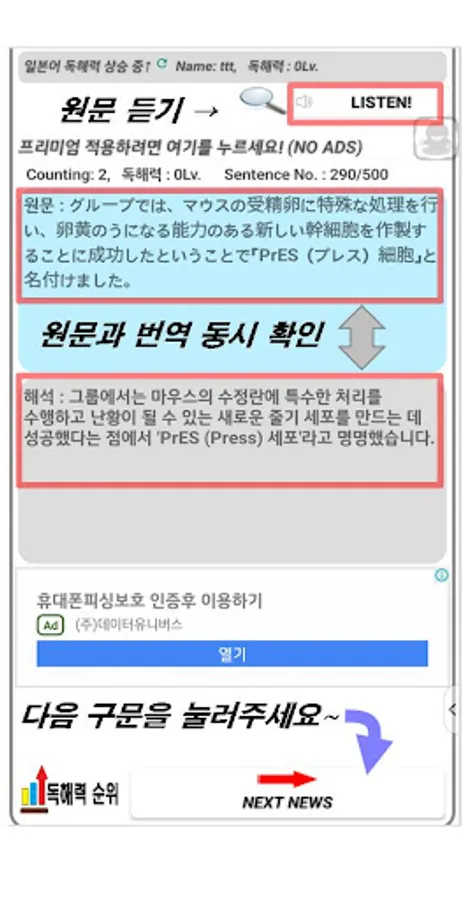 -. Reinforcement of quick interpretation ability with break reading practice function
