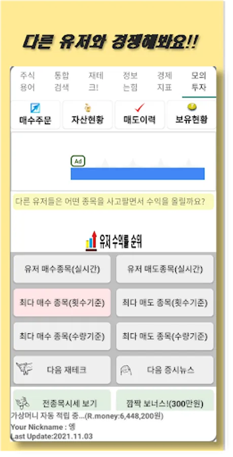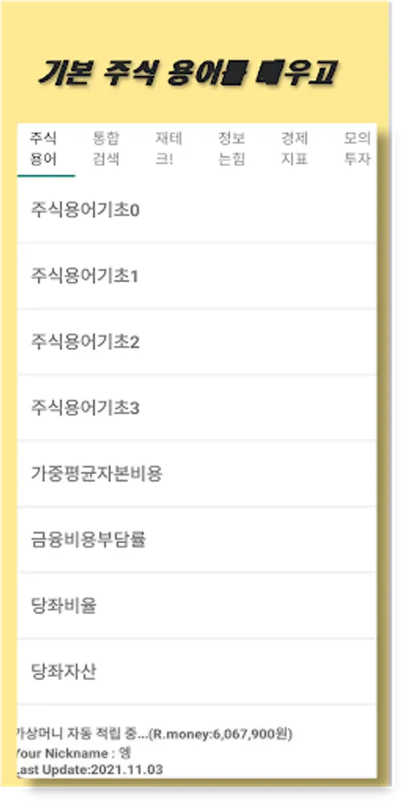 Step 4: Learn the economic notions ( "information is power" tab, "Economic Indicators" Learn to economic trends in the tab body)