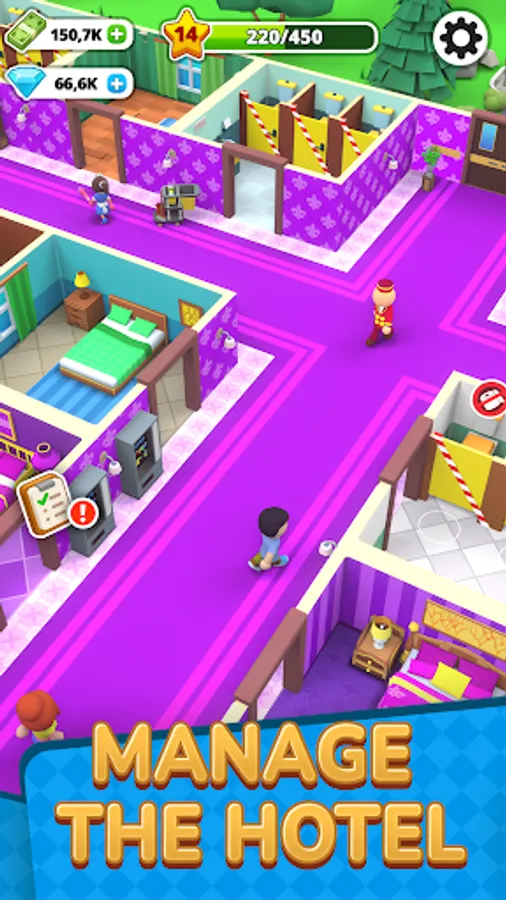 Improve your skills as a hotel manager. Start your career as a simple bellhop: greeting and check in guests, cleaning rooms, taking payments, and keeping the bathroom stocked with toilet paper.