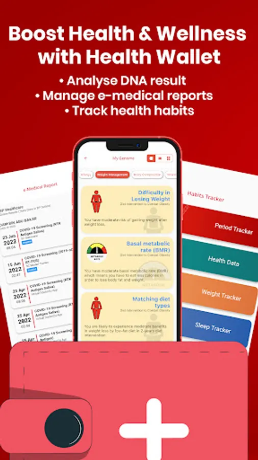 Health Wallet empowers you to take better control of your overall wellness. With the newly added DNA test that grants you personal genome mapping, you can identify potential diseases, allergies and other health risks, understand body metabolism, discover your ancestry background and others traits beneficial to improve your health.