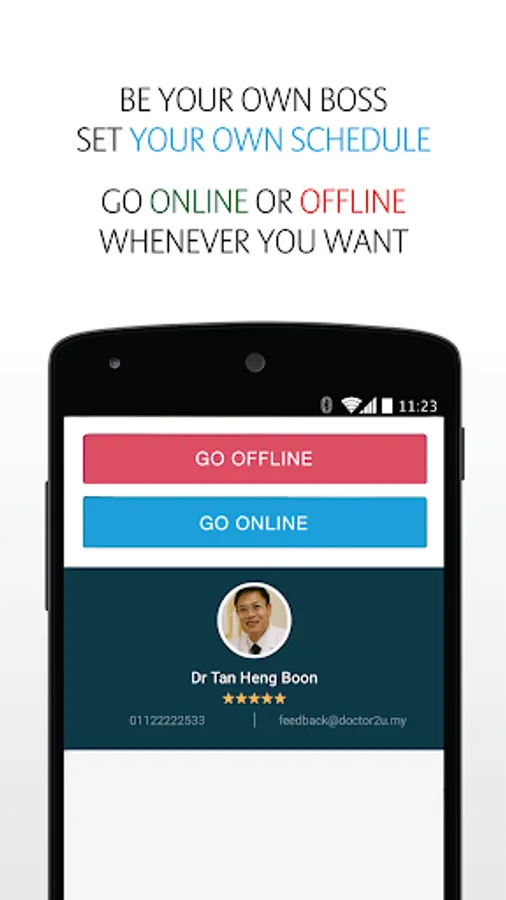 Doctor2U lets you connect to house-callers in the safest and flexible way possible. Treat friendly people in your area and help them feel better. Work full-time or only a few hours a week, whenever is convenient for you. Drive your own car, use your own phone, work when you want and treat who you want. You are your own boss and we make sure of it. The app has the function to let you go online or offline, so it's very flexible. If you're spending time with your family or working in the clinic / hospital just go offline, but when you're free and up for a job just go online.