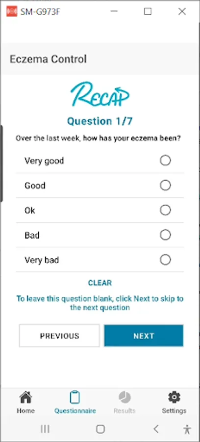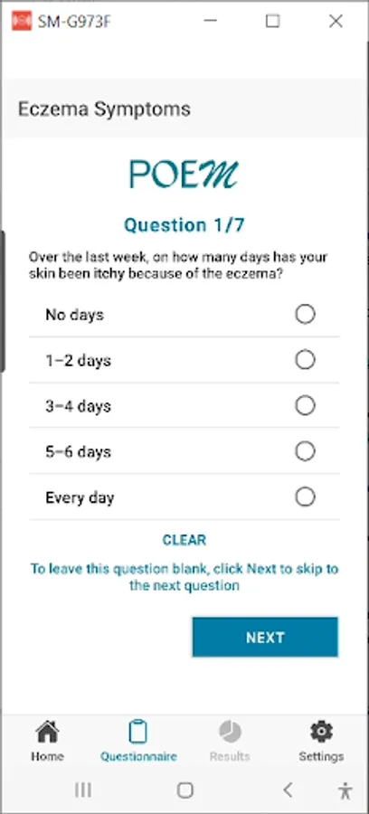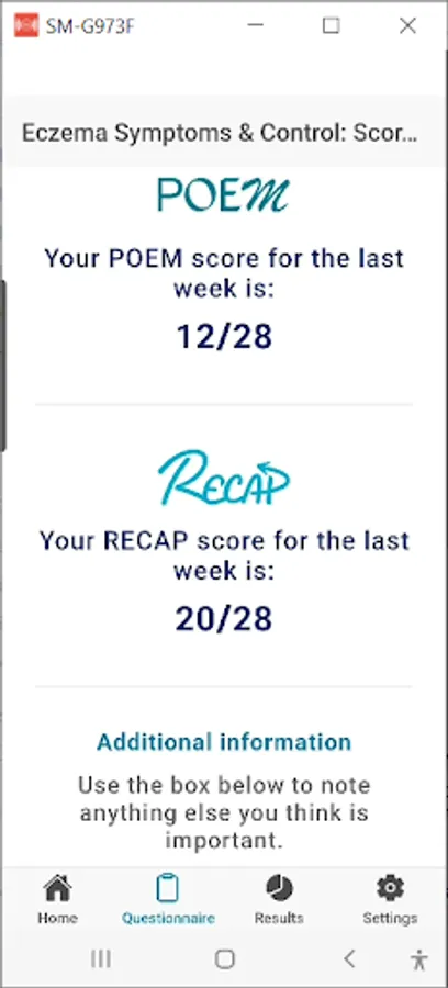 The My Eczema Tracker App is here to help you track your or your child’s eczema weekly. It uses two validated questionnaires that are used in eczema research called the Patient-Oriented Eczema Measure (POEM) and Recap of atopic eczema (RECAP). These questionnaires track eczema symptoms and eczema control. You can also keep your own notes alongside your questionnaires. By completing the questions once a week, you will get a complete picture of how the eczema has been, or you can just fill it in occasionally if you prefer.