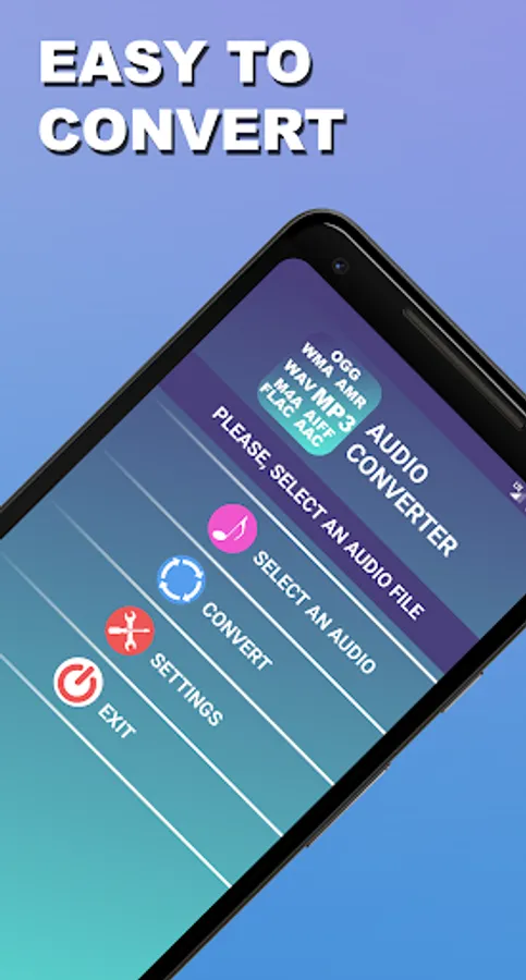 Modern and fast audio converter for tablets and phones “Audio Converter MP3 WAV WMA FLAC AMR AAC OGG etc.” converts your audio file to another audio file of a different format.