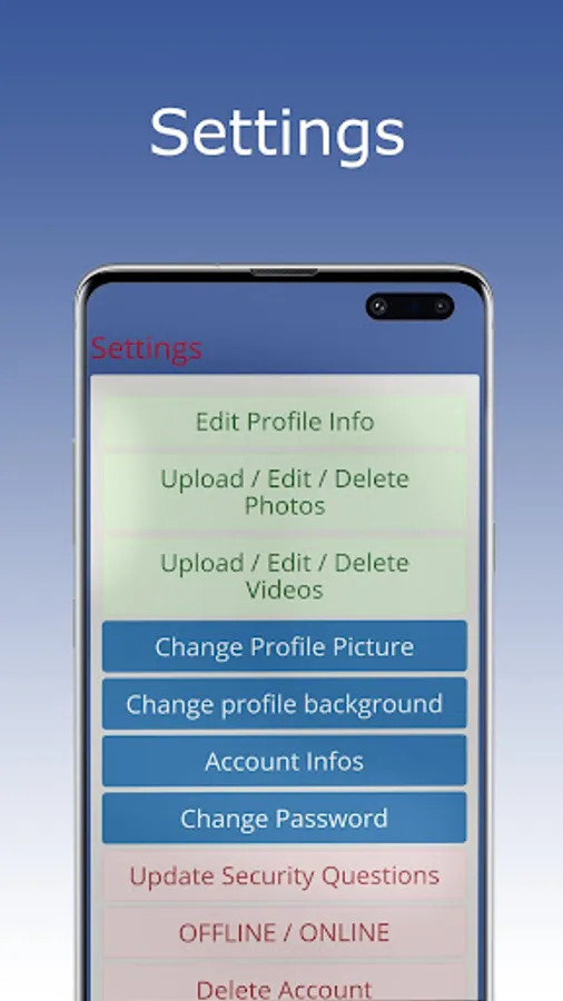 Filter Profiles - Photo Galleries - Video Galleries - Chat / Messenger - Time Line - Likes - Friends - Account Activity - Filipino Verification - Customize Profile - Go Offline..... and much more.