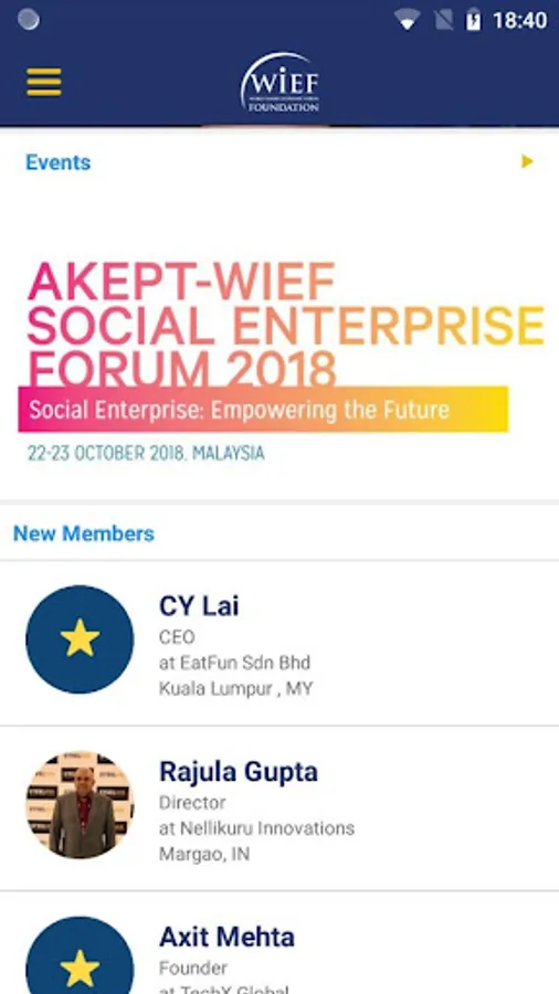 If you've attended any WIEF events, WIEF Alumni App is for you. It's an effortless way to connect with thousands of alumni of WIEF events from all over the globe. Through the app you’re able to access WIEF Members Directory, be the first to know about WIEF latest events, be eligible for wallet-friendly fees to WIEF events and be able to discover alumni near you, anywhere you are in the world. What’s more, you’ll be able to expand your network and engage globally to benefit your business.