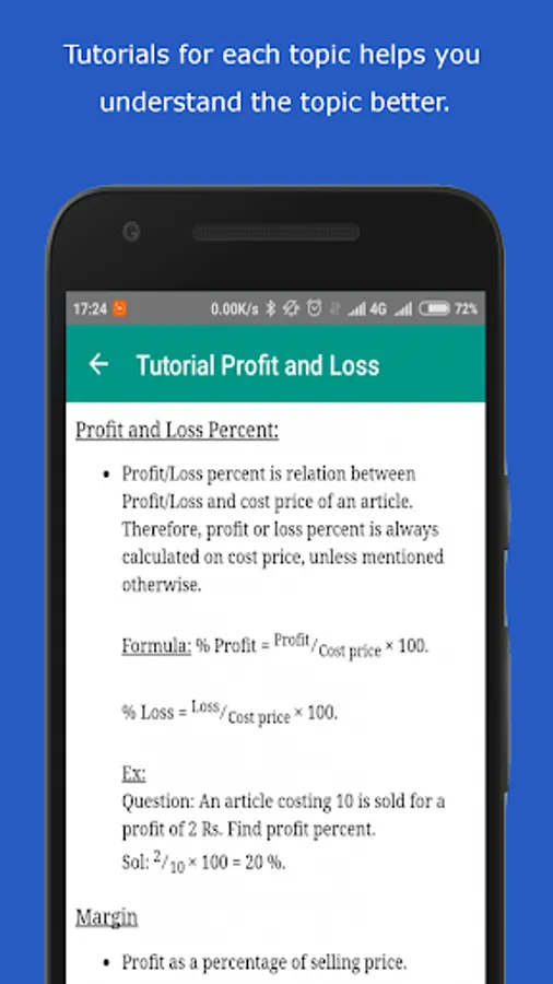 Complex General aptitude mathematical(mathematics) equations and symbols are displayed in pleasant User Interface for easy understand.