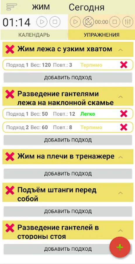Bench press is a training diary for the gym with a set of exercises for the main muscle groups, create your own training programs, with the help of a convenient calendar you can plan the day of classes in the gym, as well as record the results of the approaches and the number of repetitions. No matter what goals you set for yourself in the gym, the “bench press” will become an indispensable tool for you in gaining muscle mass, losing weight or drying.