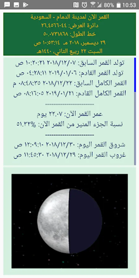 # Crescent icon to display information about the moon in your area, including the shape of the moon, its age, sunrise and sunset times for the moon and the sun, as well as the time of the lunar eclipse and the next eclipse of the sun.