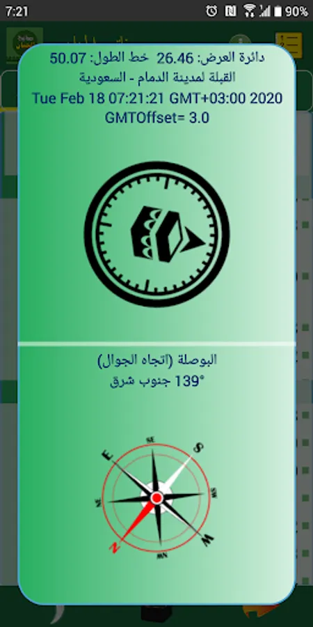 # Qibla and Compass icon to display Qibla direction of your city and the direction of the mobile and the application calculates it according to the coordinates of your city, which automatically brings it from the mobile network