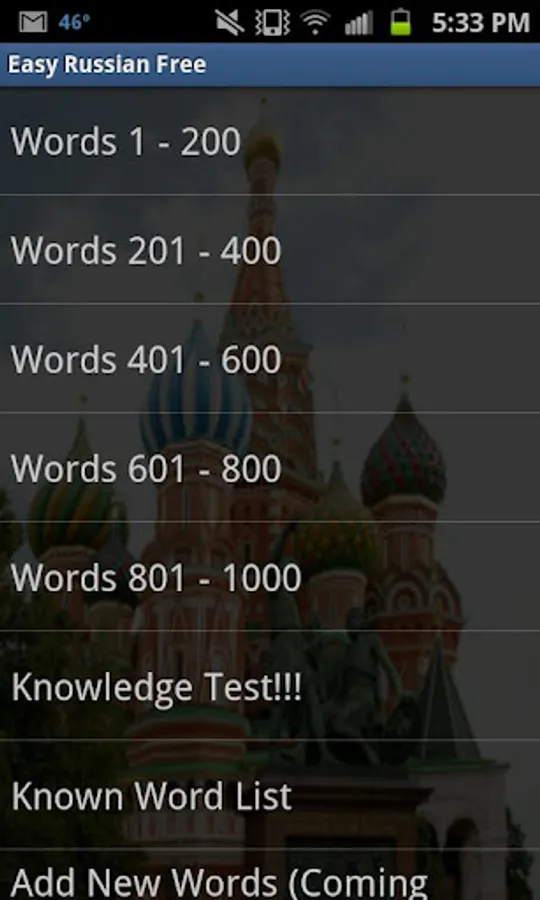 Easy Russian is designed for fast vocabulary learning through a flashcard type interface reinforced by a word quiz feature and dictionary translation to make language learning more enjoyable.