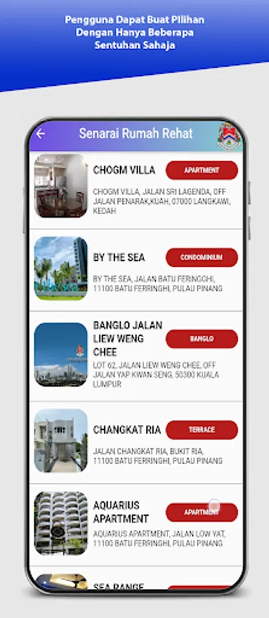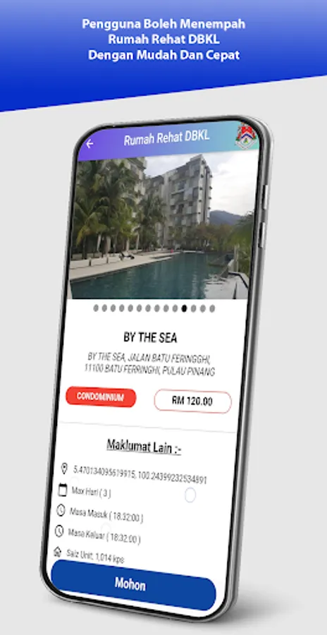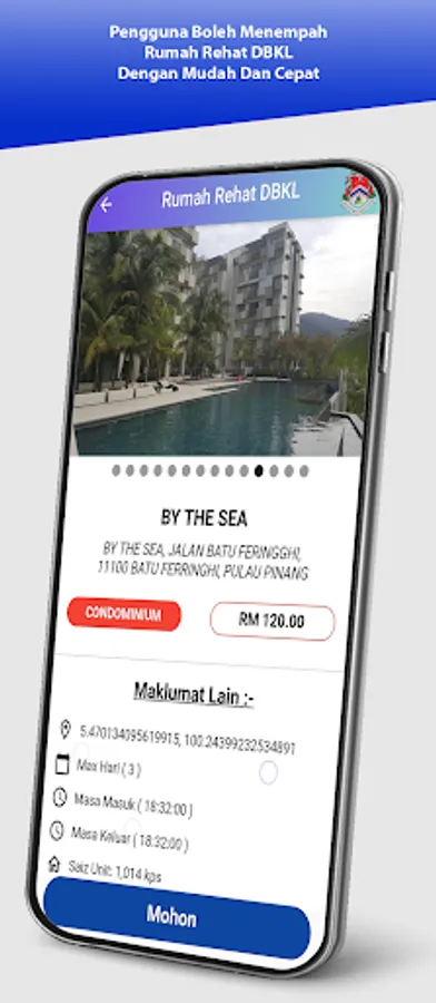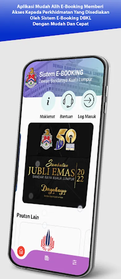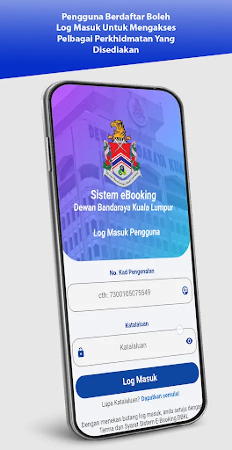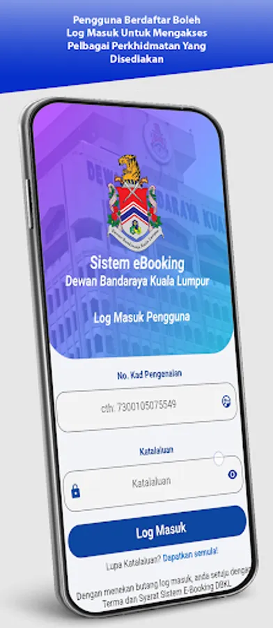 This E-Booking App has been developed and designed by the Kuala Lumpur City Hall (DBKL) to provide an easy and fast access for its staff and family members to various services including room booking, rest houses booking, application for quarter and many more.