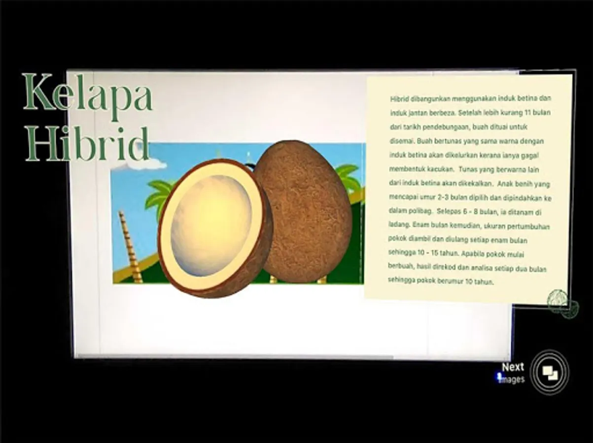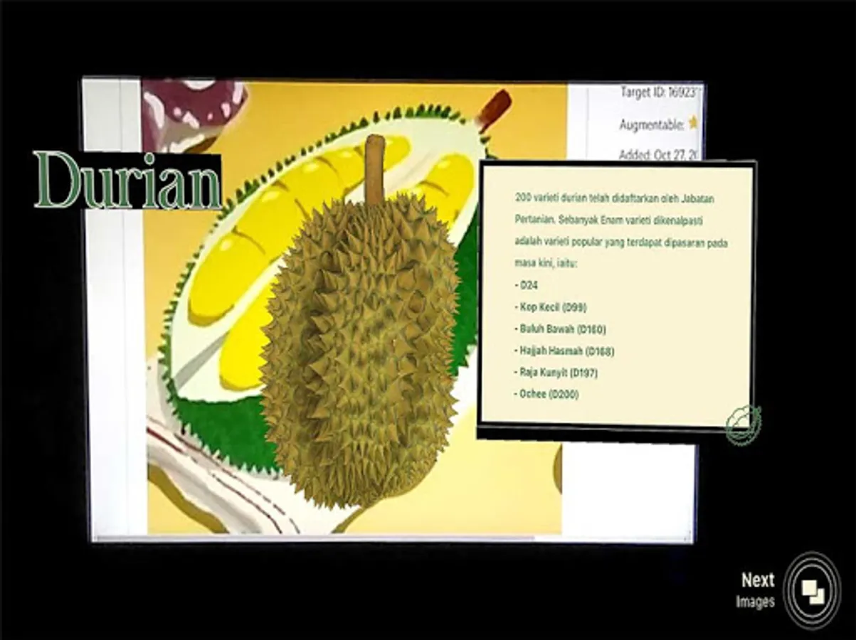 Imbas apps AR ini ke atas setiap gambar teknologi pertanian yang ada dalam mural dan maklumat berkaitan setiap teknologi pertanian yang diimbas akan dipaparkan. Antara kandungan teknologi yang tersedia ialah: