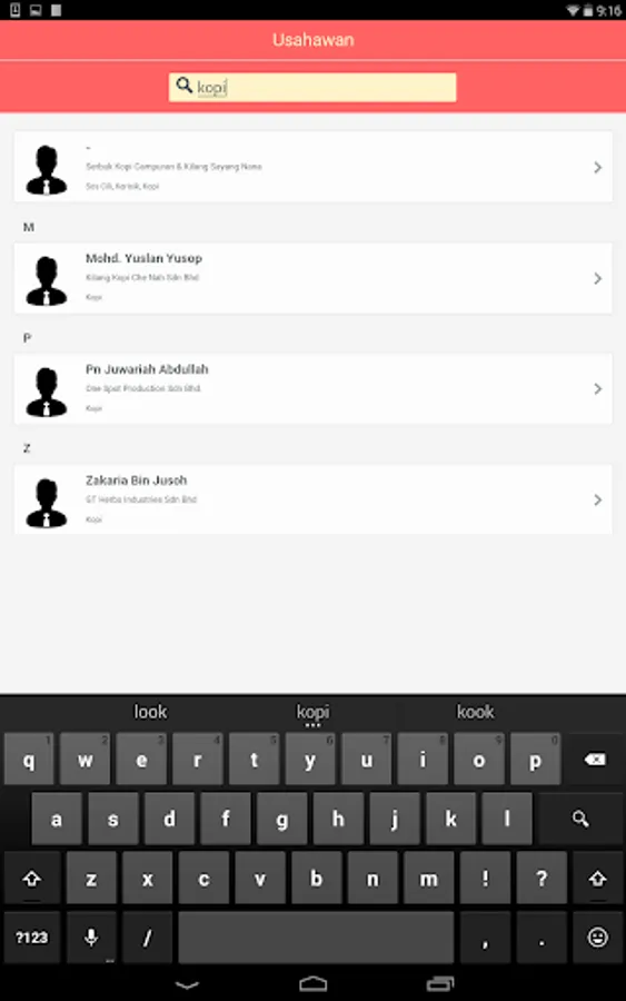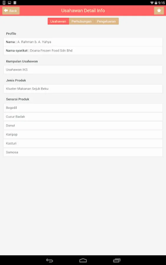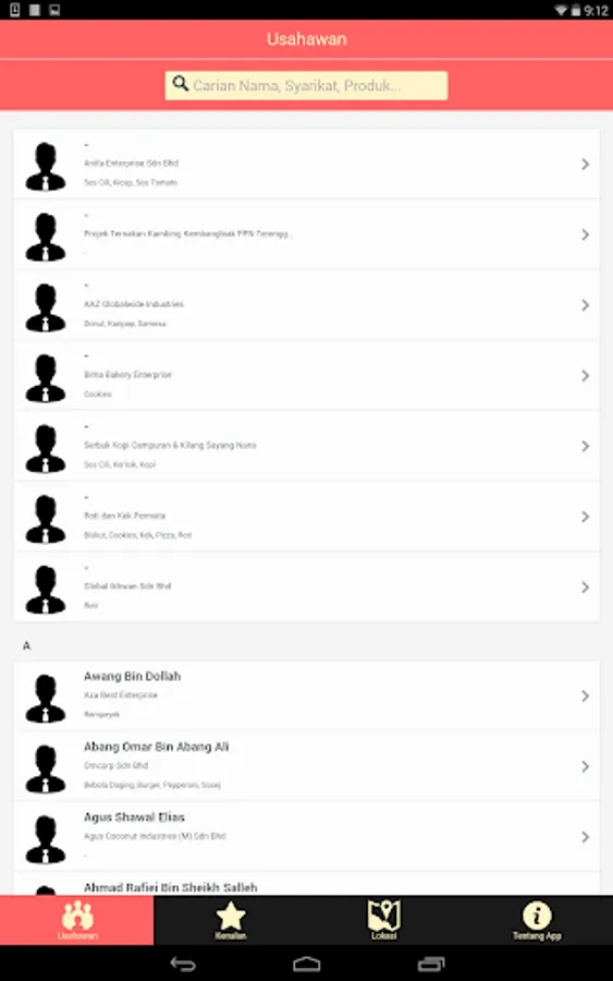 Aplikasi ini dibangunkan untuk memudahkan pengguna untuk berhubung dengan para usahawan yang berdaftar dengan MARDI. Ia akan memaparkan maklumat berkaitan usahawan seperti: