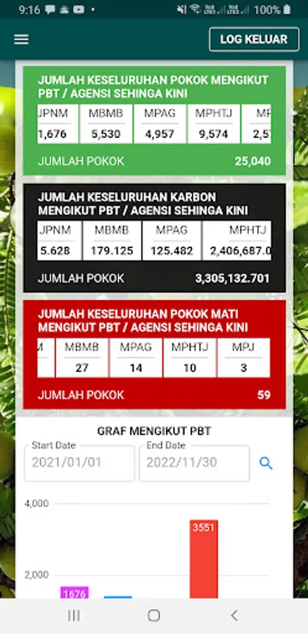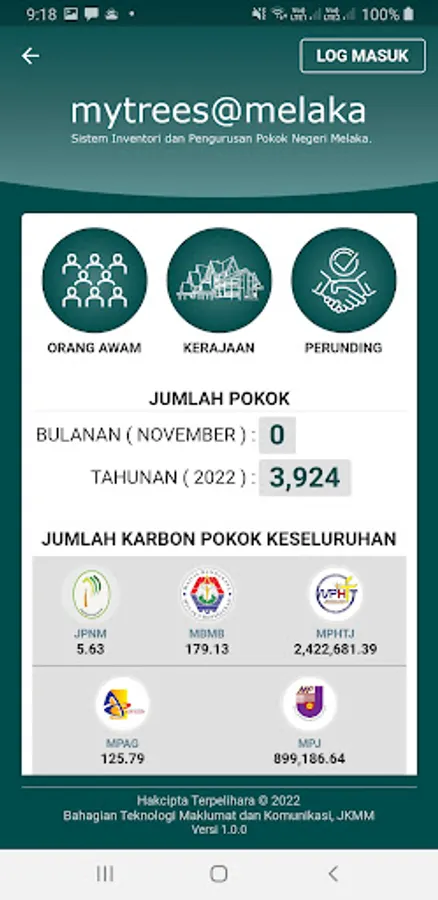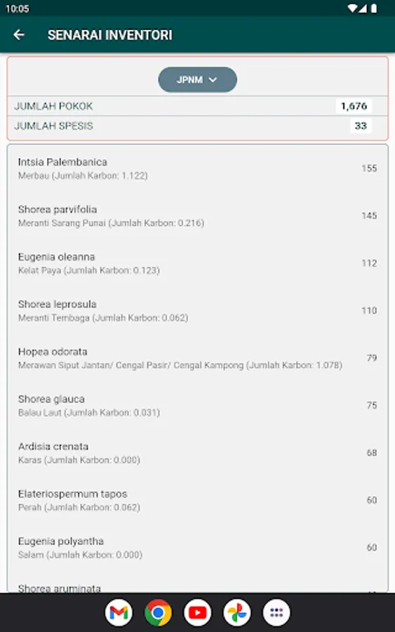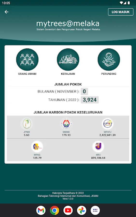 Tree information including species, number, location, tree size, total carbon, risk assessment and tree maintenance for the state of Melaka.