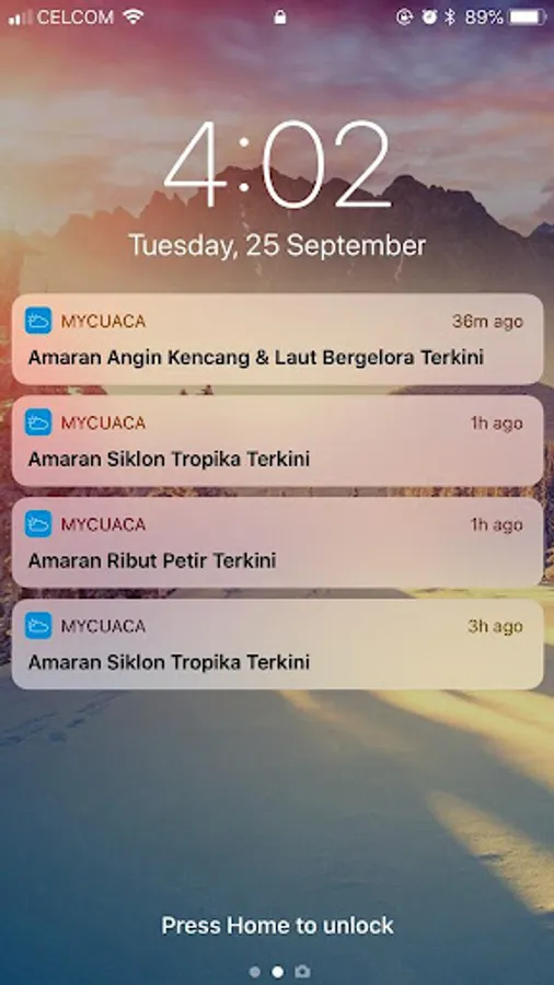 • Notifications on warning updates for strong wind and rough sea, heavy rain, thunderstorm, tropical cyclone and tsunami;