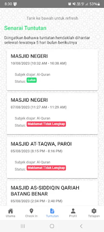 mytakmirns is a digital application that has modules such as the teaching allowance claim form, takmir study location, the latest data of takmir teachers and others digitally to the community, especially takmir teachers and surau mosque chairmen in Negeri Sembilan.