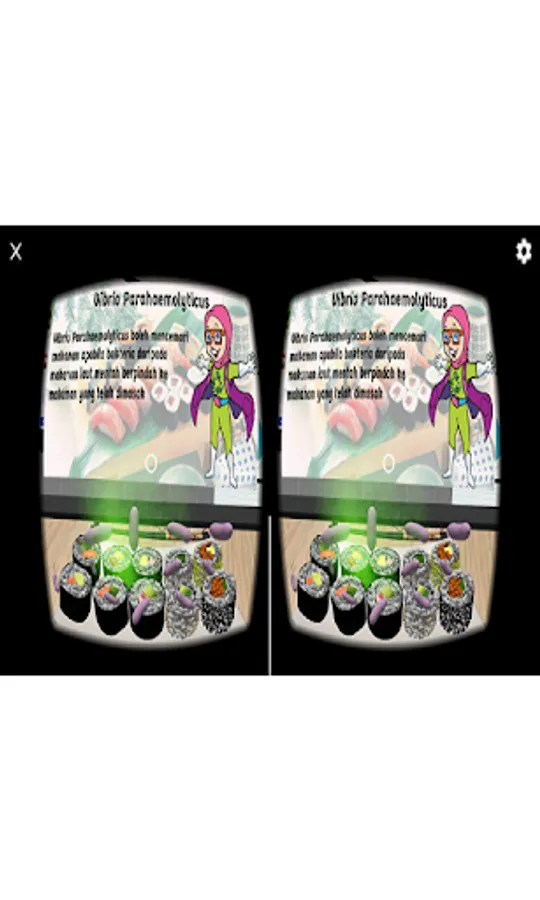 Kenali Bakteria Penyebab Keracunan Makanan VR, Aplikasi mobil ini menerangkan secara infografik dan animasi gerakan di dalam format “Realiti Visual” bagi pengenalan mengenai bakteria yang terdapat pada makanan dan kaedah pencegahan keracunan makanan. Penerangan bakteria ini bagi mengenal dan cara-cara membendung makanan terdedah kepada bakteria. Alat kawalan Bluetooth dan Kotak VR diperlukan bagi menggunakan aplikasi ini.