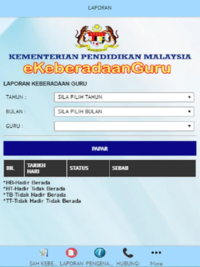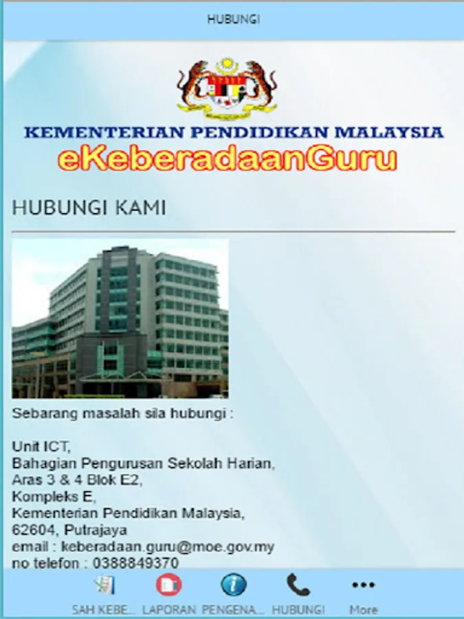 Aplikasi mudah alih ekeberadaan guru dibangunkan sebagai satu langkah inisiatif Kementerian Pendidikan Malaysia dalam memastikan perkhidmatan atas talian yang disediakan selaras dengan arus teknologi semasa.