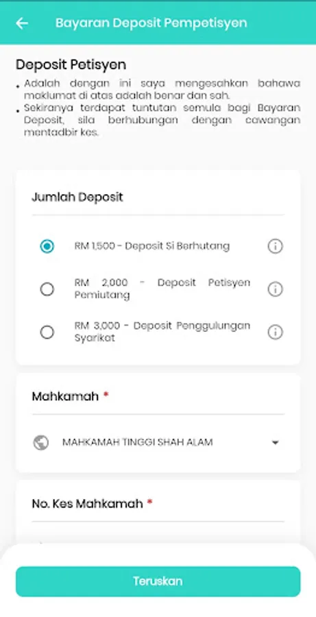 The e-Insolvency application is a service module contained in the Integrated Insolvency System (INSIST) which is the case administration system of the Malaysian Insolvency Department (MdI). This application offers services to search Individual Bankruptcy Status, Company Winding Status search, Insolvency Monthly Installment Payment and Petitioner Deposit Payment.