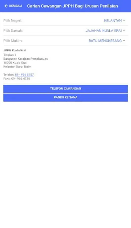 4. Carian Cawangan JPPH bagi Urusan Penilaian