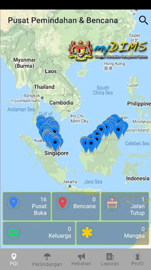 MyDIMS is an application that provides information on disasters around Malaysia to the public.