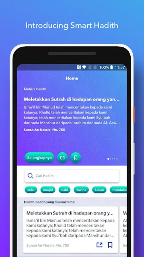 Aplikasi Mobil Smart Hadith dibangunkan dengan kerjasama antara Suruhanjaya Multimedia Malaysia (MCMC) dan Jabatan Kemajuan Islam Malaysia (JAKIM). Ia merupakan satu platform yang mudah digunakan oleh pengguna bagi mendapatkan hadith yang sahih. Terdapat pelbagai koleksi hadith berdasarkan kitab, bab, perawi dan lain-lain lagi.