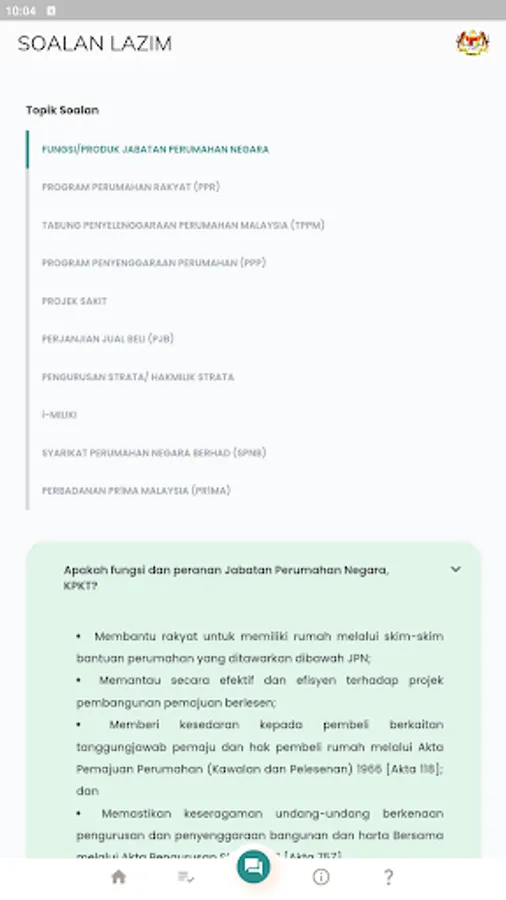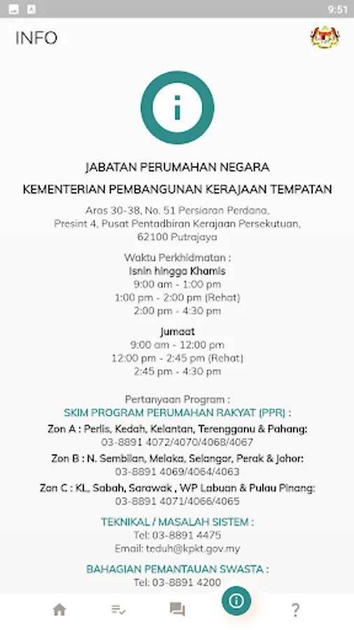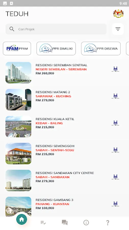 This application focuses on displaying projects that are open for applications according to selected housing schemes. Complete information to the selected project can be seen by the application user which can give an initial impression before the user makes an application through the link shared for each related scheme. Among the schemes selected in this application are MyHOME, PPR, Rumah Transit, PPAM, Regional Residency and PR1MA. There is also an application status review function for schemes under the supervision of the National Housing Department. It requires the applicant's identification card number and also the SPRN password to check the status of the application.