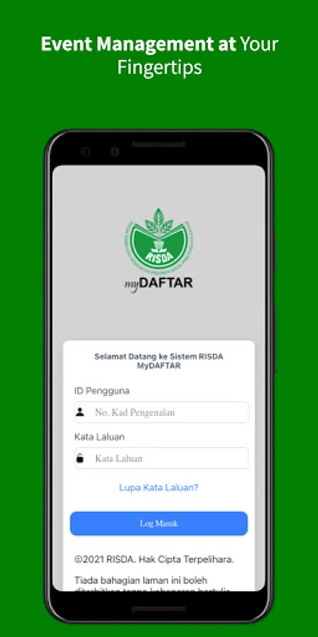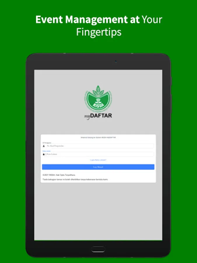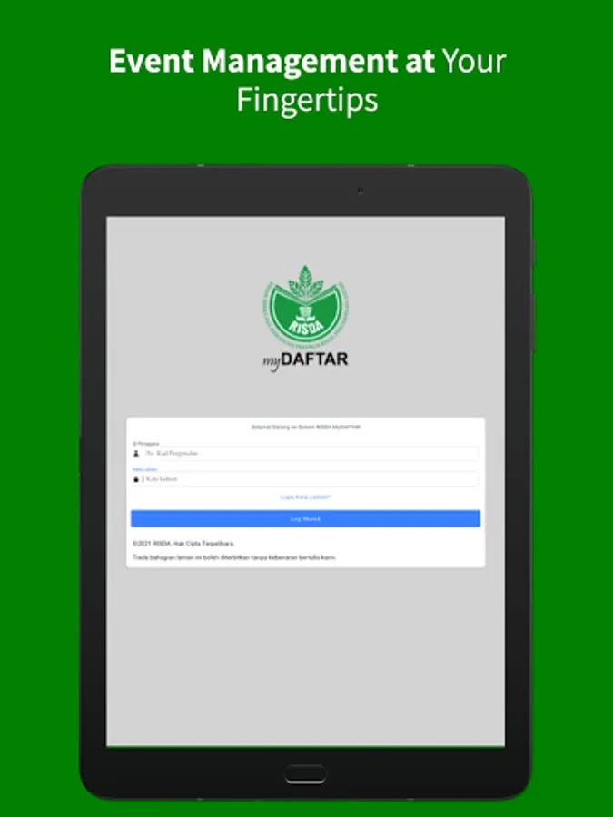 RISDA myDaftar app gives you instant access to your event management in RISDA right at your fingertips.