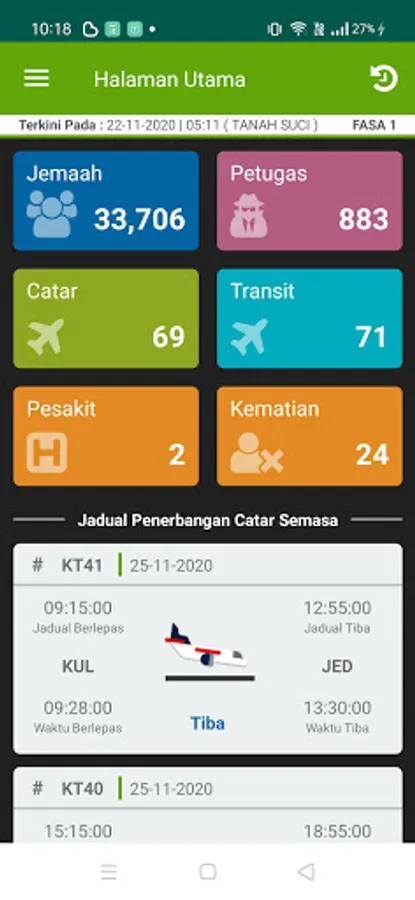 ✓ Statistik maklumat penting semasa Operasi Haji seperti statistik jemaah haji di Tanah Suci, penerbangan, kematian, petugas, kemasukan ke hospital dan pergerakan jemaah dan petugas.
