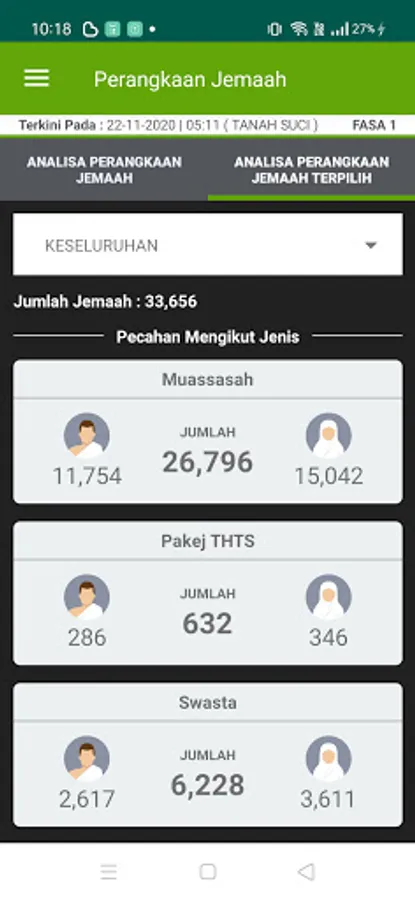 ✓ Statistik jemaah dan petugas berdasarkan pelbagai kriteria.