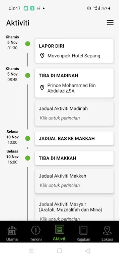 ✓ Jadual pergerakan dan aktiviti jemaah haji di Tanah Suci