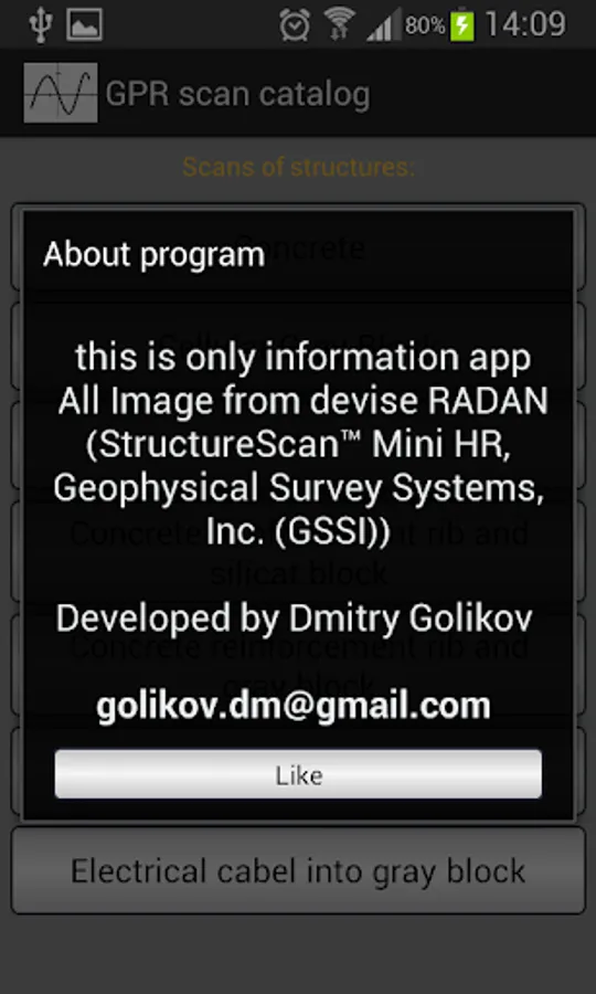 This is images catalog of GP Radar scans. All images from device RADAN (StructureScan™ Mini HR) Geophysical Survey Systems, Inc. (GSSI).