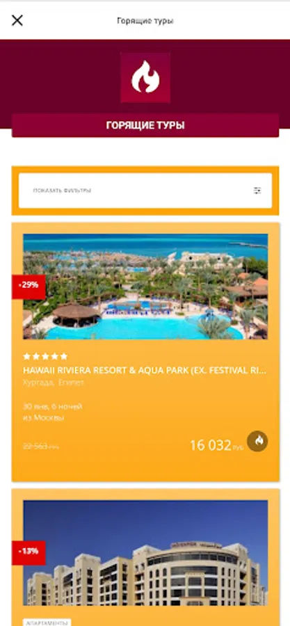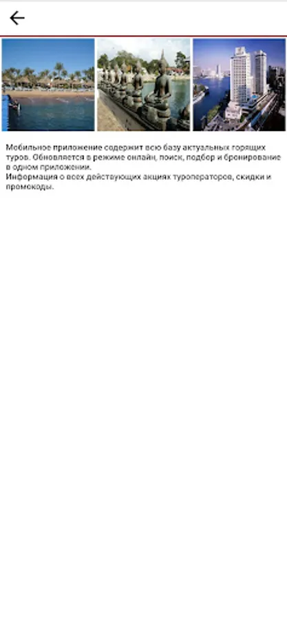 Мобильное приложение ВСЕ ГОРЯЩИЕ ТУРЫ содержит всю базу актуальных горящих туров туров, обновляется в режиме on-line, поиск, подбор и бронирование в одном приложении.