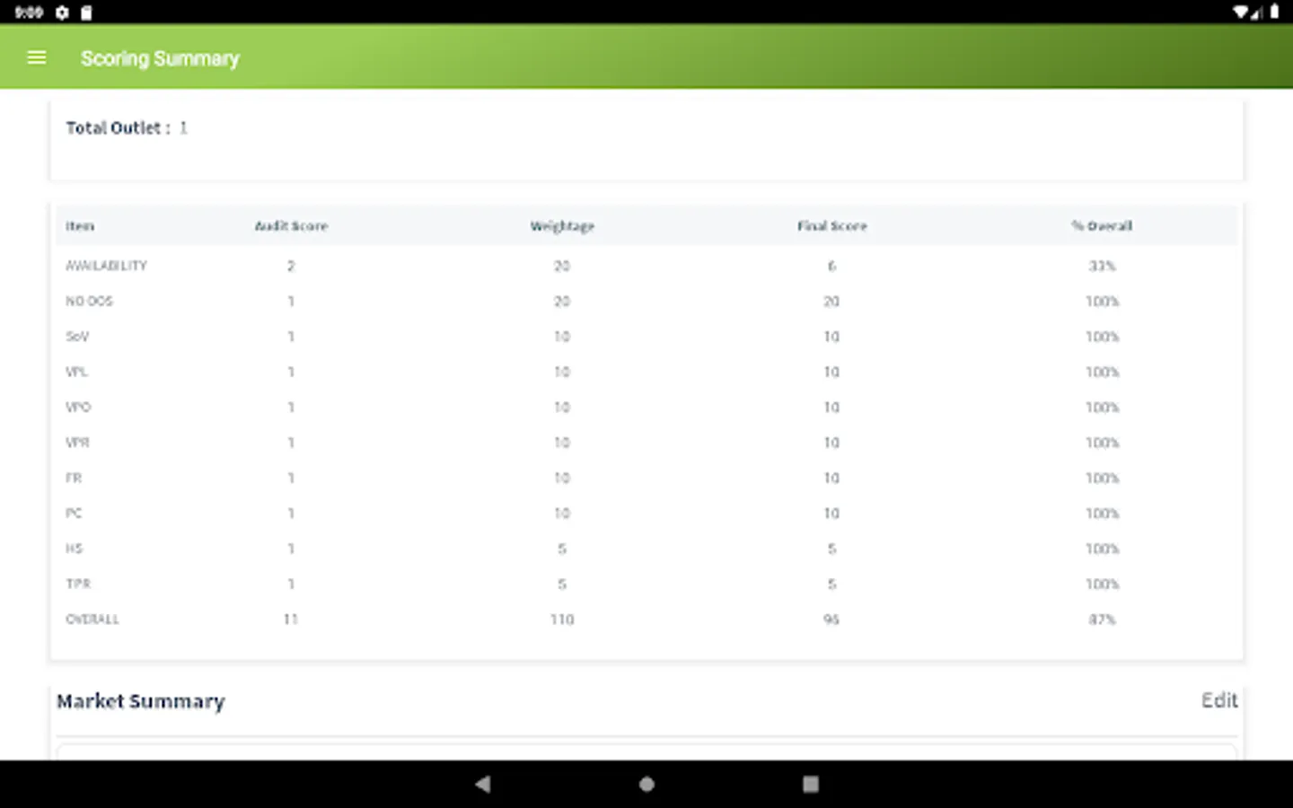 The App allow ASM to do market audit on SE's outlet, do coaching with SE and generate scoring for the Audit
