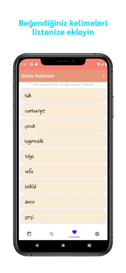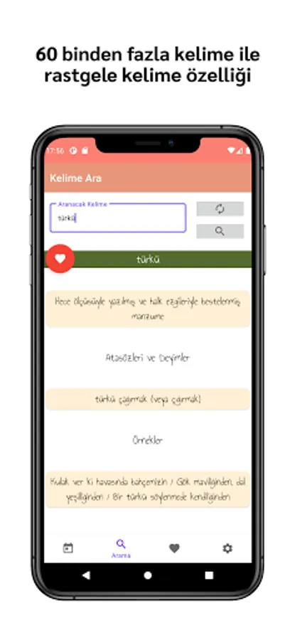 In addition to all these, you can search for Turkish words from within the application. The application uses TDK's database. With more than 60 thousand words registered in the application, you can bring random words by using the "bring random words" button and learn about these words.