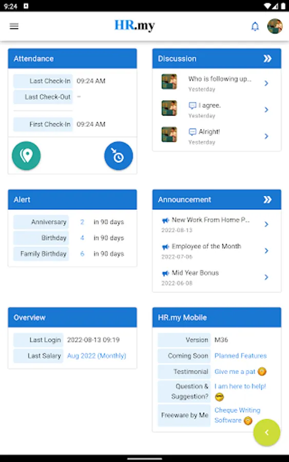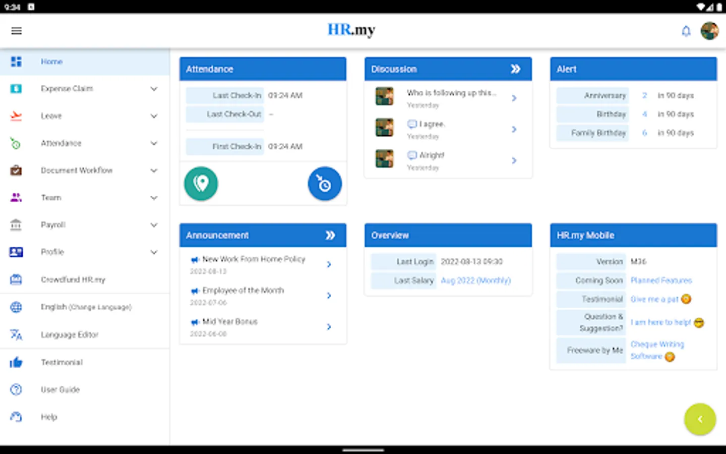HR.my Mobile is a free HR app for human resources and employee management. HR.my is FREE Forever with UNLIMITED data storage for UNLIMITED headcount, it does not matter if your organzation has 10 or 1000+ employees. You may manage employees anytime anywhere from this free HRMS app or via the web portal at https://hr.my