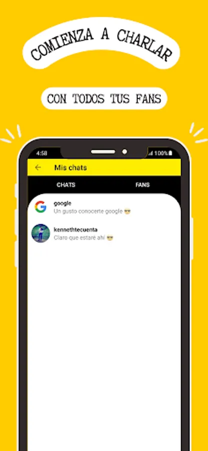 - The chats are equipped with real-time notifications, which will notify you of the result of each message that arrives on your mobile immediately so that you don't miss any messages and can enjoy a good conversation with your fans or with your most beloved influencers.