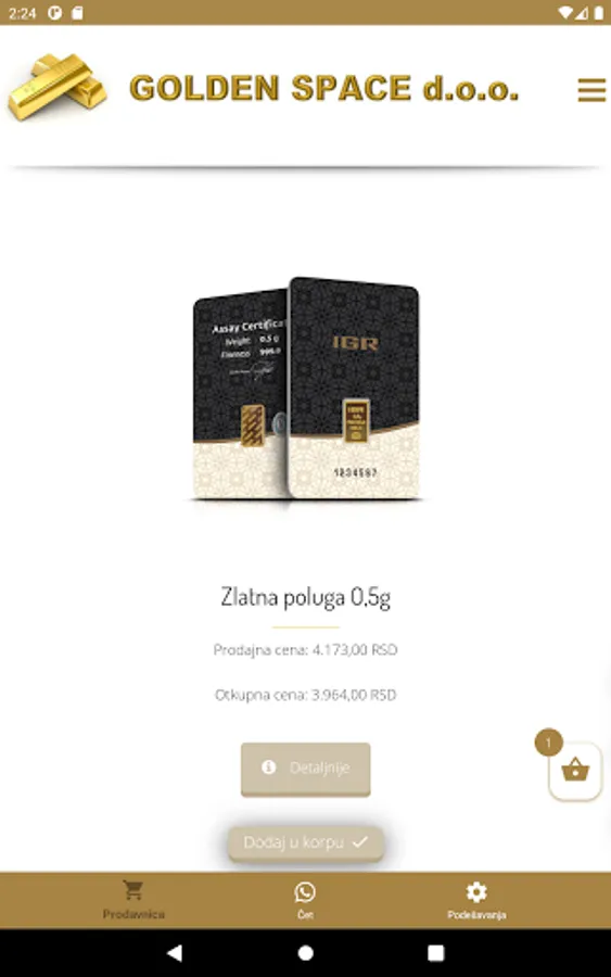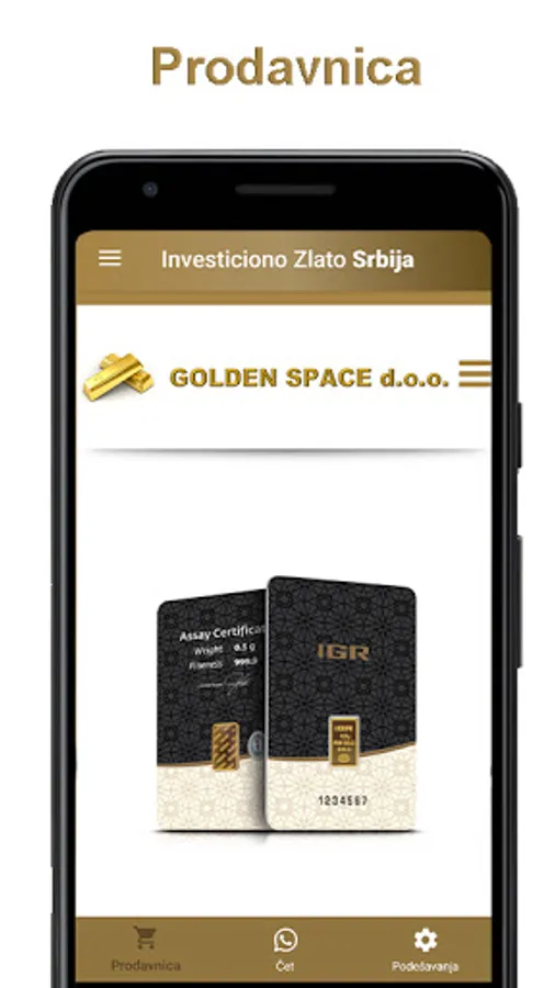 GOLDEN SPACE d.o.o. enables the citizens of Serbia to buy INVESTMENT GOLD at the lowest price. It is certified gold, purity 999.9 according to the LBMA standard (London Bullion Market Association), produced in refineries that are on the Good Delivery list.