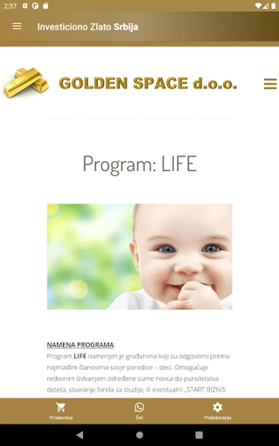 So, the citizens of Serbia can buy physical gold from us and take it home or store it in their safes. For users of the LIFE, PREMIUM and RELAX programs, we provide free storage of purchased gold in a safe at our commercial bank.