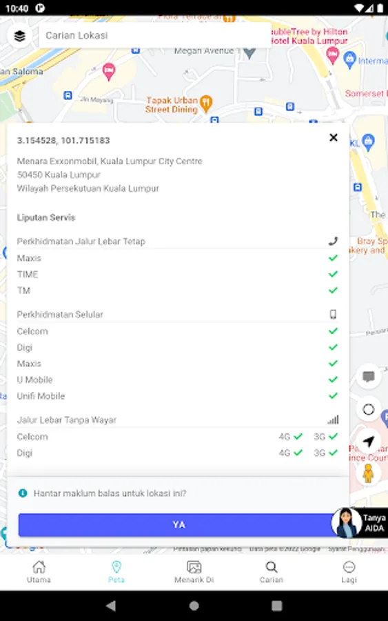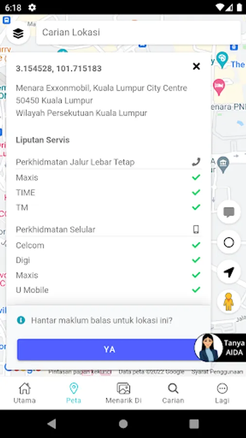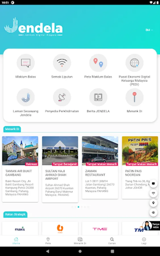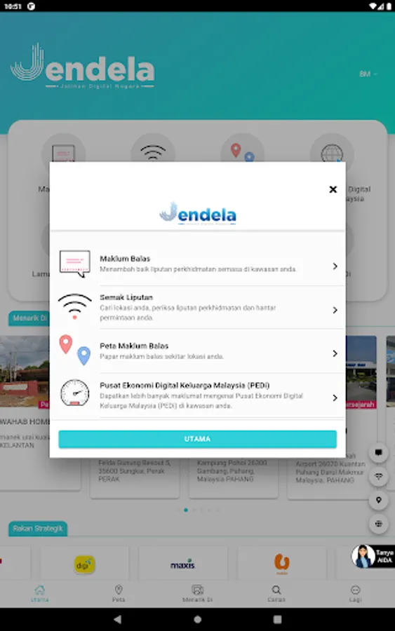 JENDELA Map Mobile App provides Rakyat facility to check network coverage in their area, submit feedback to as well as demand new services from the respective Service Providers. All feedback submitted in this app will be channeled to the Service Providers for them to plan better connectivity and services to Rakyat in the near future.