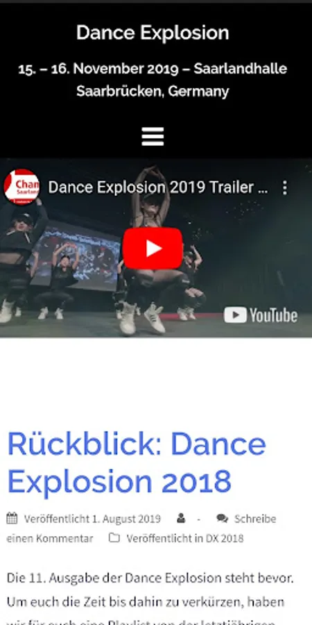 After the successful events in recent years, the 11th edition of the "Dance Explosion" takes place this year on two days in the Saarlandhalle Saarbrücken on 15 and 16 November 2019.