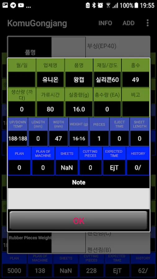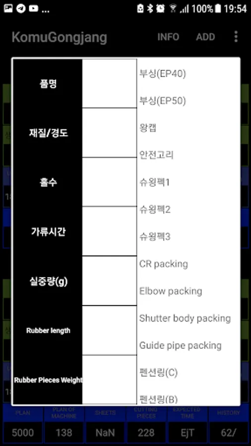 This App Calculates of working process. And displays how many material, how much time need for making rubber items.
