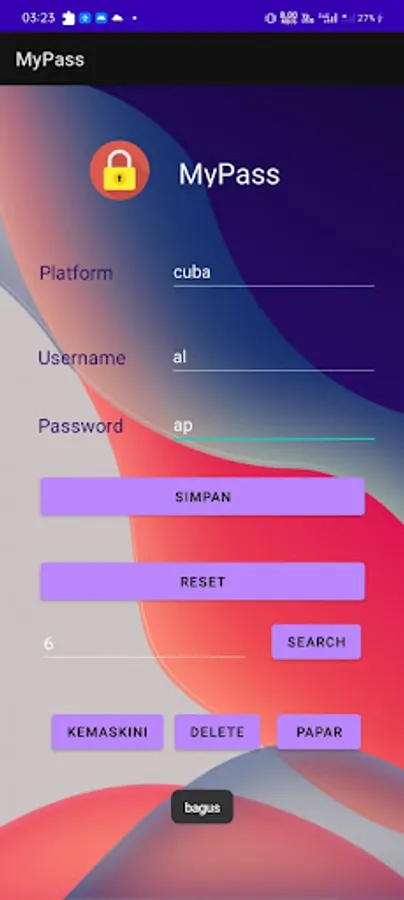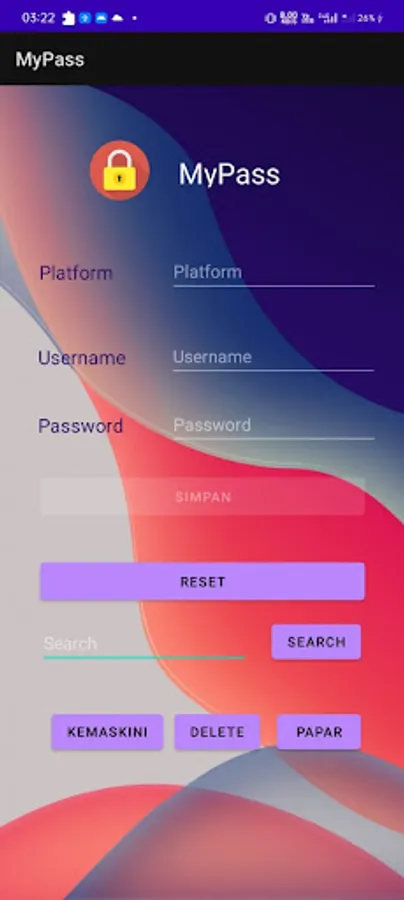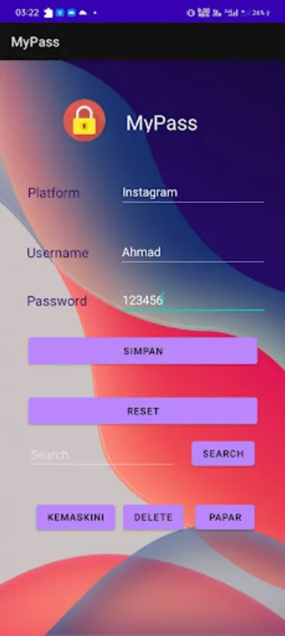 Aplikasi ini membernarkan pengguna untuk menyimpan katalaluan bagi akaun-akaun yang telah direka.