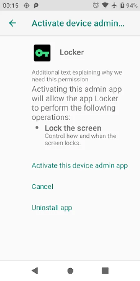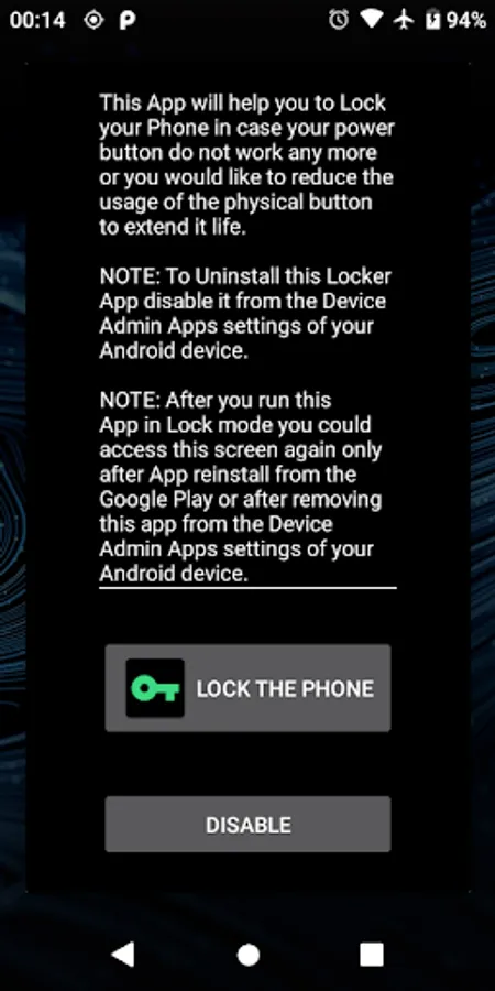 NOTE: To Uninstall this Locker App disable it from the Device Admin Apps settings of your Android device.