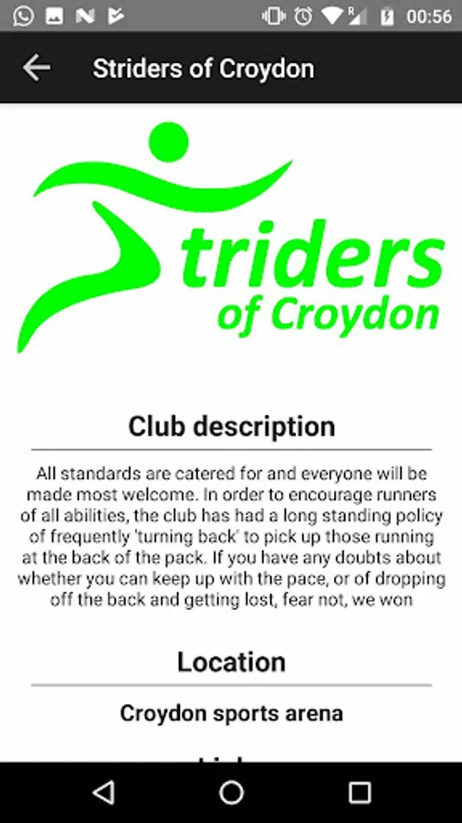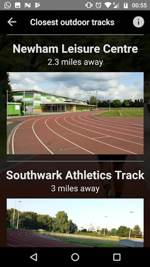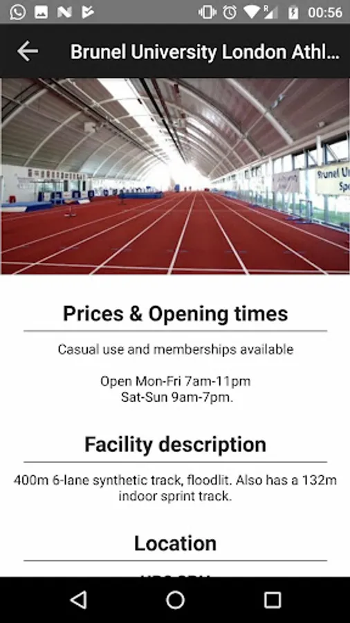 London Runner provides a list of athletics facilities and running clubs in the London area. User's location is required to find the closest facilities.