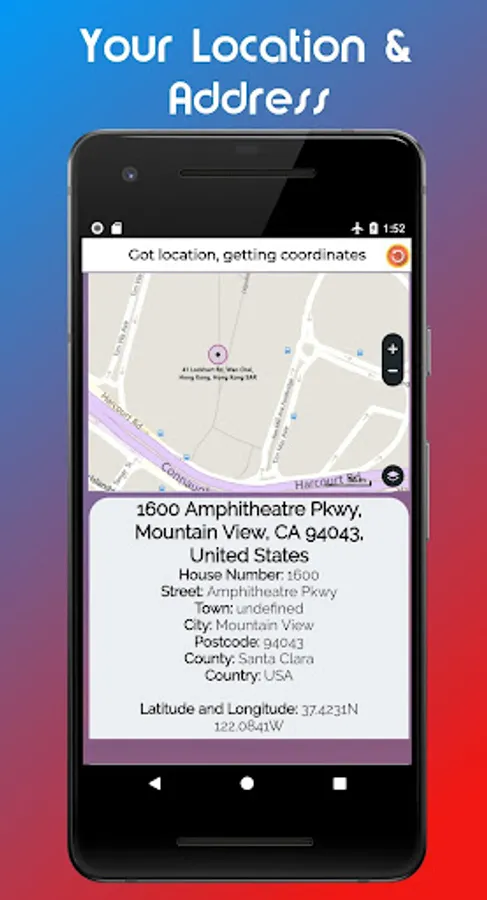 This is the perfect app to help you find where you are and even find your approximate address and postcode/zip code based on your GPS location.