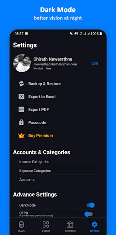 This app has a very unique and simple design. Very easy to use and Dark mode feature is also available for free.