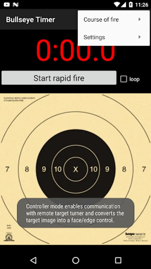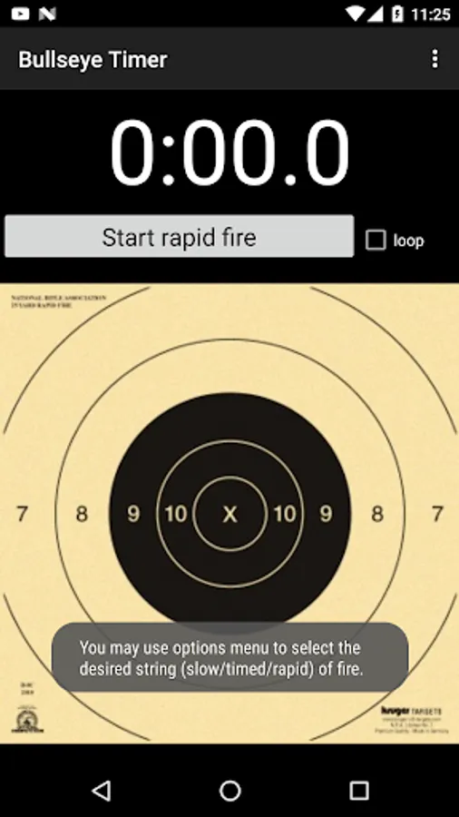 Gives voice range commands ("load", "ready on the firing line", etc...). May be used for a training session or to run a line in actual competition. Shows countdown in "ready" phase and elapsed time in "firing" phase. Supports slow/timed/rapid strings.